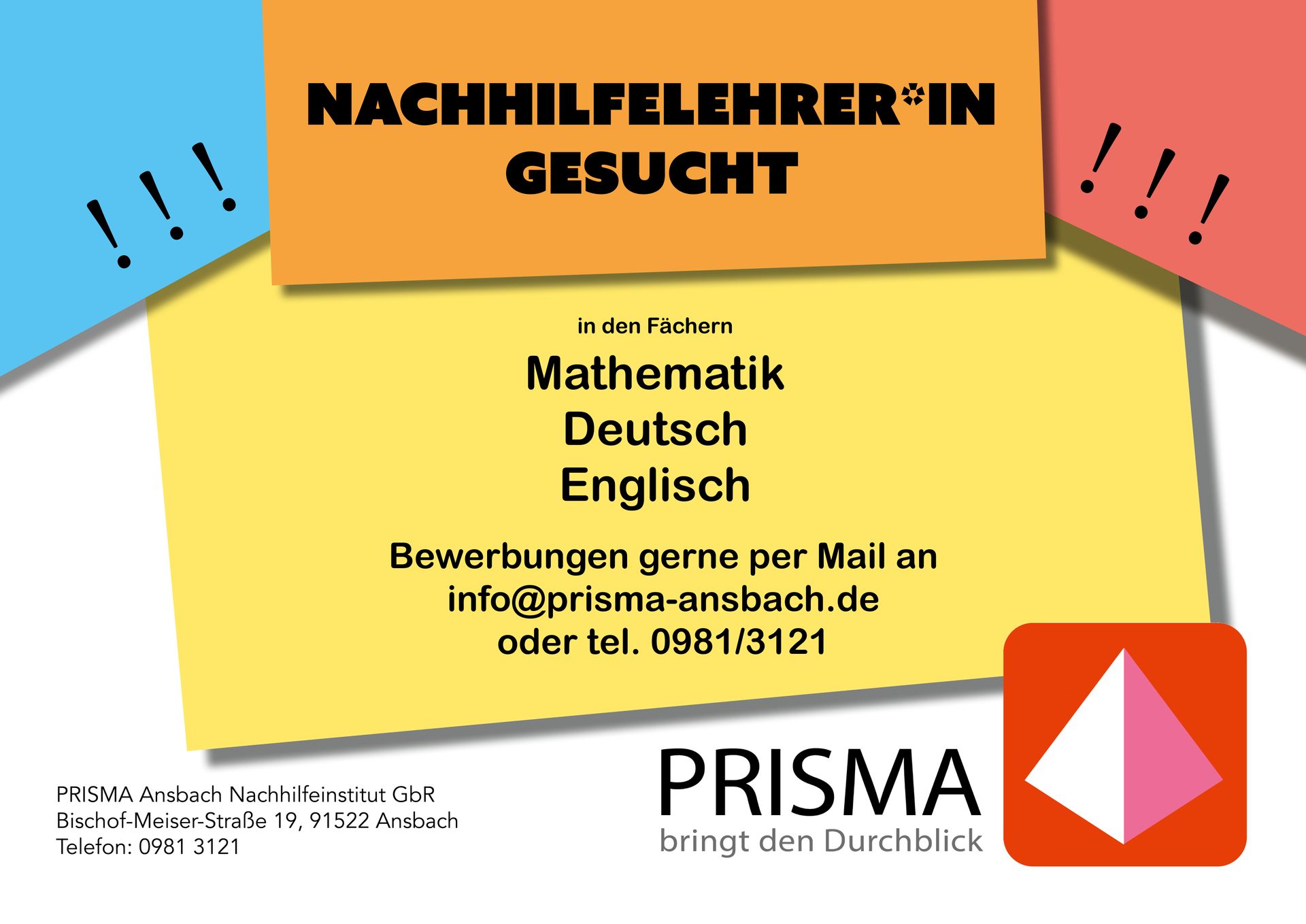 PRISMA Ansbach ist eine renommierte Nachhilfeschule im Herzen von Ansbach. Über 30 Jahre hinweg haben wir uns auf gezielte Lernfortschritte spezialisiert. Unser Institut ist geprägt von Engagement und individuellen Lösungswegen.